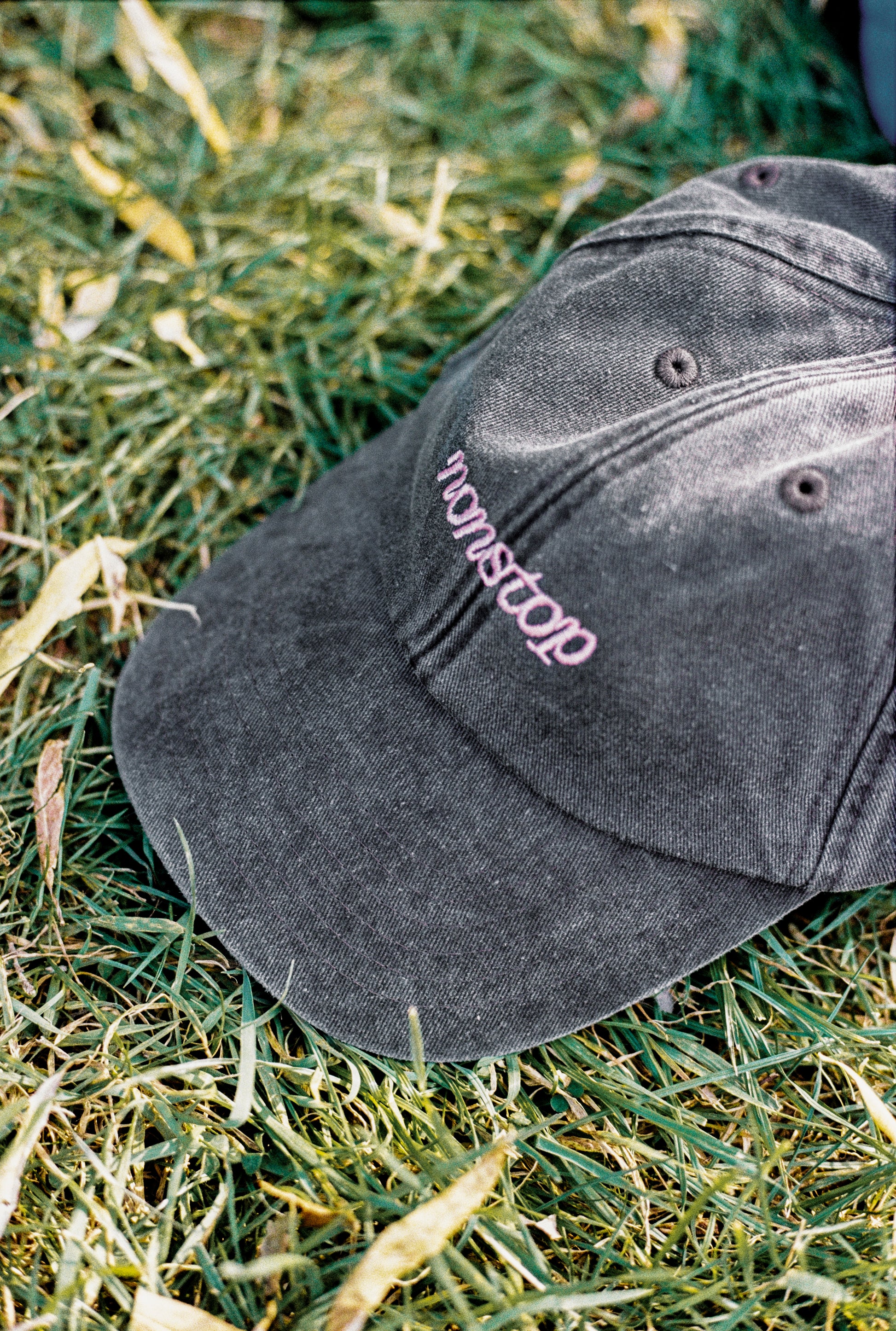 - Vintage Graue Cap mit hellrosa nonstop-Logo-Stickerei