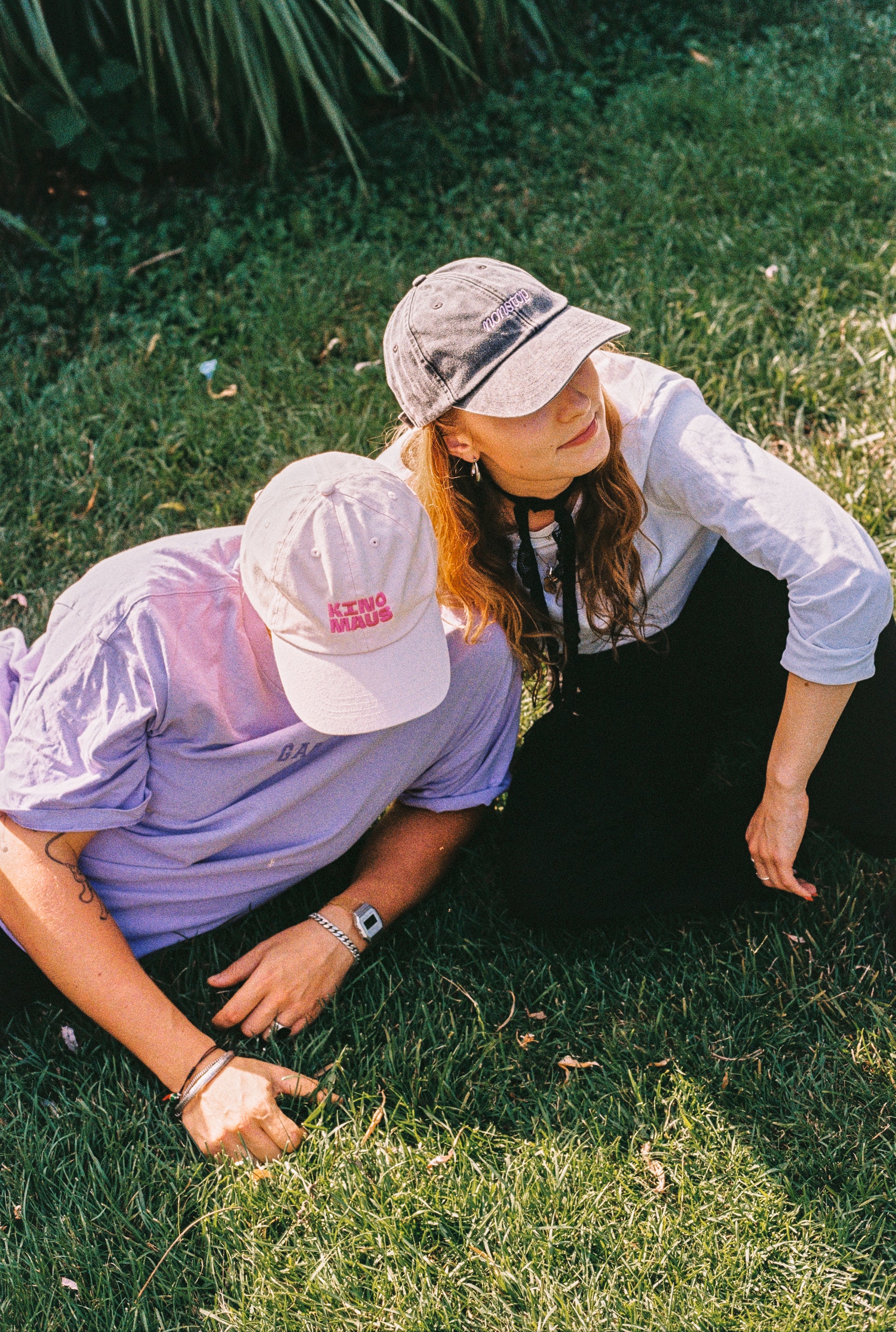 Caps mit KINOMAUS-Schriftzug in Blau und Rosa